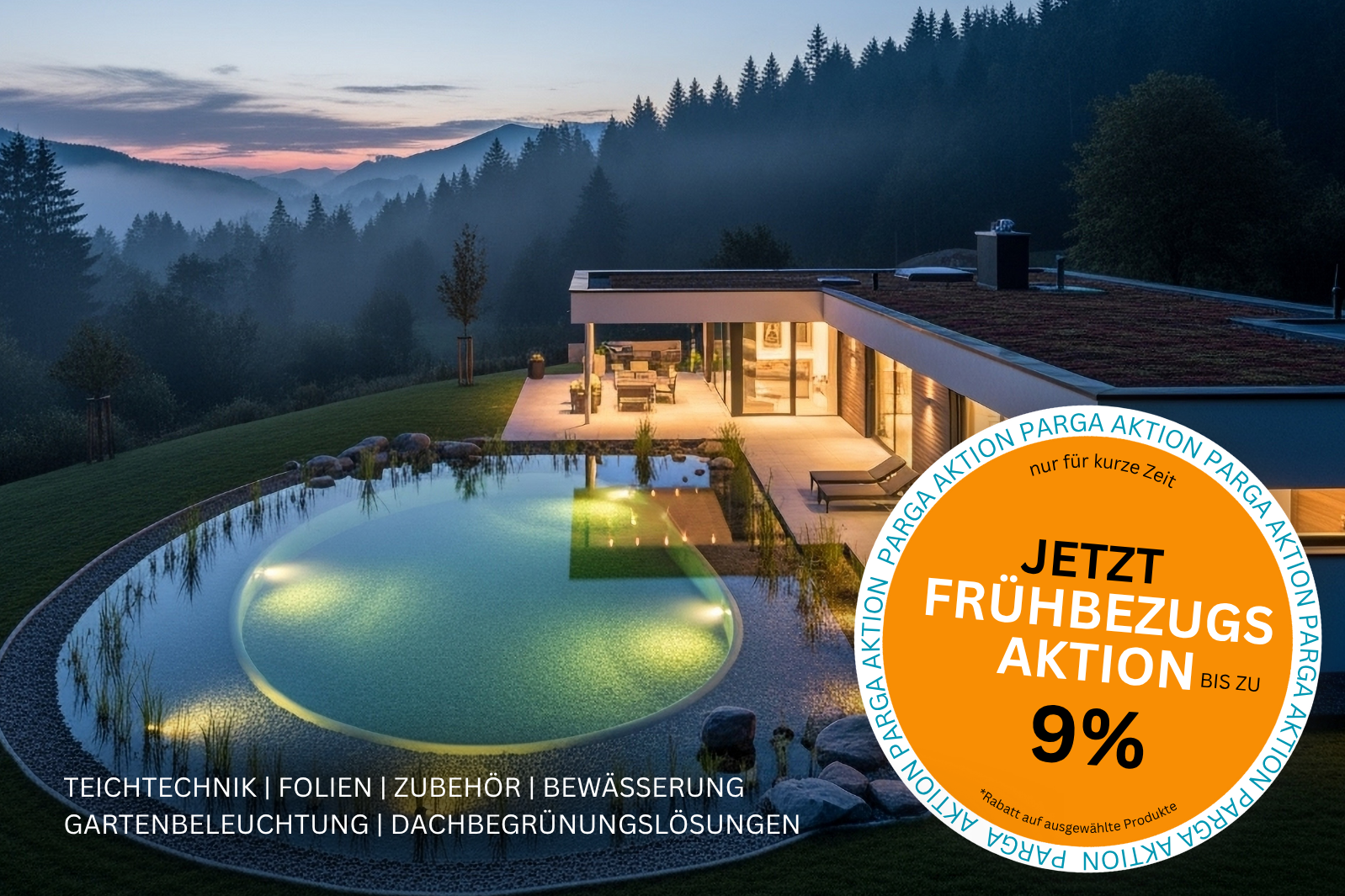OASE Teichtechnik, EPDM-Teichfolien, PVC/FPO/PP/PE-Teichfolien und Teichzubehör. Ergänzend Bewässerungstechnik von Netafim, K-Rain, Irritrol sowie dot-Spot Garten-, Pool- und Teichbeleuchtung. Auch das gesamte Dachbegrünungssortiment von Optigrün ist jetzt mit Aktionspreisen erhältlich.